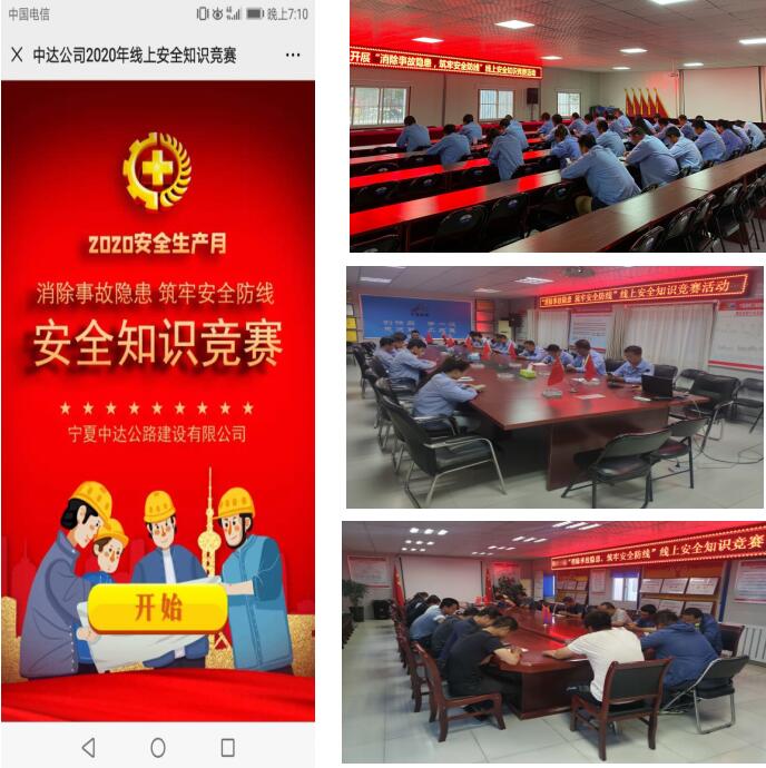 安全文化是安全生產(chǎn)的靈魂,安全教育和培訓(xùn)又是安全文化發(fā)展的動(dòng)力。寧夏中達(dá)公路建設(shè)有限公司結(jié)合“安康杯”競(jìng)賽活動(dòng)及安全生產(chǎn)月活動(dòng)安排,積極組織公司各級(jí)開展以“消除事故隱患,筑牢安全防線”為主題的線上、線下安全生產(chǎn)知識(shí)有獎(jiǎng)競(jìng)賽活動(dòng),檢驗(yàn)、督促各級(jí)安全教育培訓(xùn)工作落實(shí)到位。