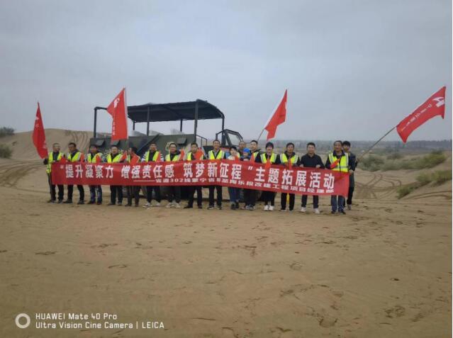 為提升團隊凝聚力及協(xié)作意識,培養(yǎng)員工果敢、主動、堅毅的心理素質,省道302線蒙寧省界至陶樂段改建項目部于10月5日開展了以“提升凝聚力 增強責任感 筑夢新征程”為主題的戶外團建活動?;顒赢斕煸缟洗蠡飪貉笠缰鵂N爛的笑容和滿懷期待的心情一起出發(fā),來到了活動基地——拉巴湖沙漠生態(tài)觀光園。