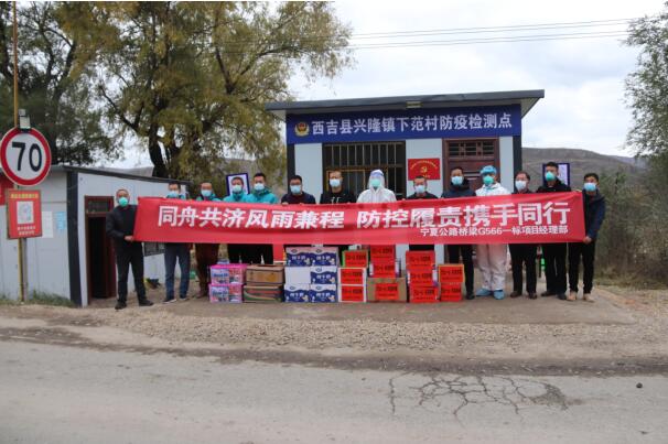 多難興邦精誠志,同心同德顯擔(dān)當(dāng)。11月4日下午,寧夏公路橋梁建設(shè)有限公司G566一標(biāo)段項目部連同西吉縣交通運輸局主要負(fù)責(zé)人驅(qū)車近兩百公里,到達(dá)位于寧甘界的西吉縣興隆鎮(zhèn)下范村防疫檢測點和平峰鎮(zhèn)中岔疫情防控檢測點開展慰問活動。
