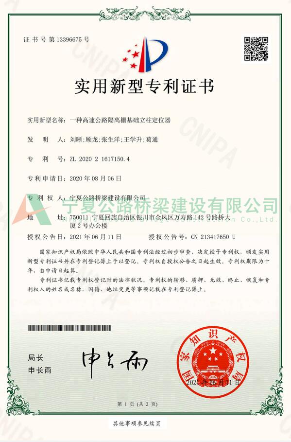 實(shí)用新型專(zhuān)利:一種高速公路隔離柵基礎(chǔ)立柱定位器