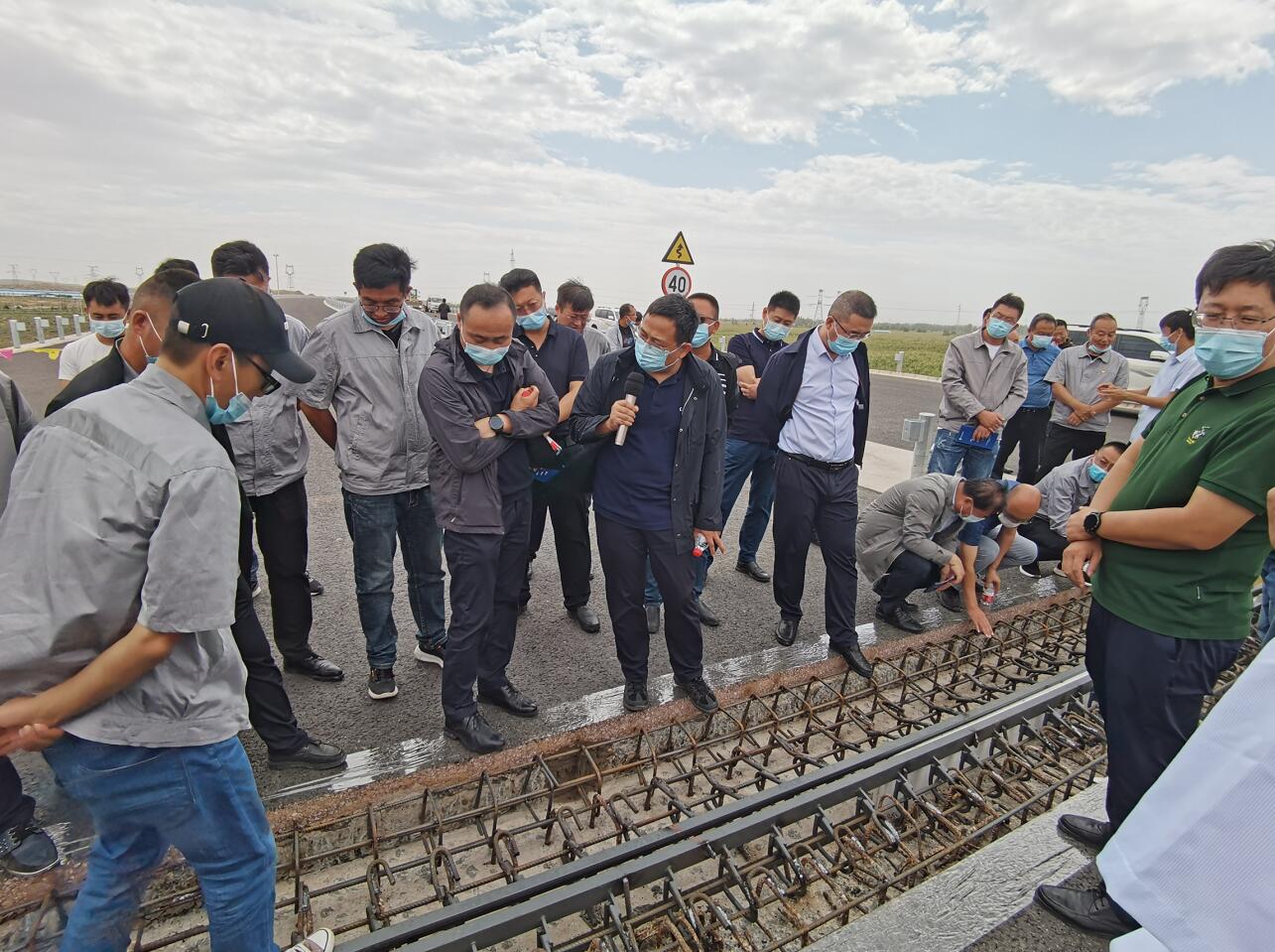 王偉總工程師充分肯定了烏瑪A5標(biāo)在瀝青路面施工中所采取的各項(xiàng)技術(shù)創(chuàng)新和質(zhì)量措施。他表示:要堅(jiān)決貫徹“質(zhì)量贏取市場、創(chuàng)新驅(qū)動(dòng)發(fā)展”理念,在堅(jiān)持問題導(dǎo)向、目標(biāo)導(dǎo)向、結(jié)果導(dǎo)向方面,烏瑪 A5 項(xiàng)目起到了很好的示范引領(lǐng)作用;要有更強(qiáng)的自信心,打開思想壁壘、沖破固化思維,勇于嘗試采用新材料、新技術(shù)、新工藝去解決工程質(zhì)量問題,真正做到讓技術(shù)創(chuàng)新為提質(zhì)增效服務(wù);要以觀摩項(xiàng)目為樣板,深度挖掘策劃管理的差距和不足,充分解決好策劃編制不嚴(yán)謹(jǐn)、過程落實(shí)不堅(jiān)決等問題。