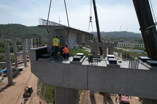 5月19日,G566西吉縣城至夏寨連接線工程項(xiàng)目第一片T梁順利安裝完成。