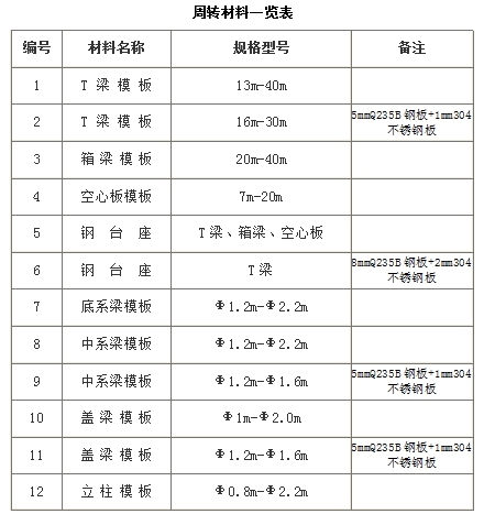 周轉(zhuǎn)材料一覽表
