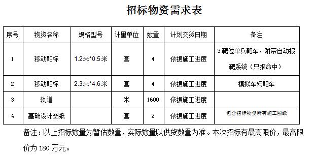 (2)兩個(gè)靶場(chǎng),共8套移動(dòng)靶(含軌道),其中4套3靶位單兵靶車(chē)(靶標(biāo)尺寸寬0.5米*高1.2米,附帶自動(dòng)報(bào)靶系統(tǒng),只報(bào)命中),4套模擬車(chē)輛靶車(chē)(靶標(biāo)尺寸:寬4.6米*高2.3米)。每條軌道長(zhǎng)200米,軌道含剎車(chē),防撞、運(yùn)行軌道,軌道高于地面約5-10厘米;