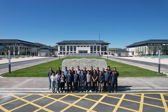 第三支部黨員在寧夏公路橋梁建設(shè)有限公司承建的西吉縣委黨校廣場(chǎng)前合影留念