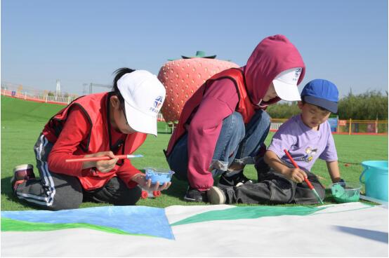 正午,伴著炎炎烈日,紅、黃、藍(lán)、綠四隊(duì)斗志昂揚(yáng),領(lǐng)取物料,小隊(duì)內(nèi)部職能分工——繪畫(huà)組、外協(xié)組、涂色組。長(zhǎng)6.8米、寬4米的納斯卡巨畫(huà)第一步驟極大的考驗(yàn)大家的體力及細(xì)心程度,白色畫(huà)布在烈日的照耀下直晃人眼,但每個(gè)團(tuán)隊(duì)的成員都極其有耐心的或爬、或跪、或蹲,在白畫(huà)上一筆一筆繪制網(wǎng)格,確定坐標(biāo),筆筆慎重,分毫必較,嚴(yán)謹(jǐn)、細(xì)致的工作態(tài)度讓人欽佩。這邊繪畫(huà)組緊張忙碌著,那邊外協(xié)組也沒(méi)有閑著,積極與其他團(tuán)隊(duì)做好協(xié)商、交流,力爭(zhēng)四幅畫(huà)作在最終合體的時(shí)候能無(wú)縫對(duì)接。14:00-17:30,體力的消耗加上炎熱的天氣,沒(méi)有消磨隊(duì)員的斗志與毅力,歷經(jīng)3個(gè)多小時(shí),四幅畫(huà)作全部完成,巨畫(huà)拼接,當(dāng)“傳承、改變、革新、發(fā)展”精彩呈現(xiàn)的那一刻,每個(gè)隊(duì)員都成就感滿滿;當(dāng)“奔跑吧,寧夏公路”的吶喊聲沖向云霄的時(shí)候,每個(gè)隊(duì)員都笑逐顏開(kāi)、歡欣鼓舞。
