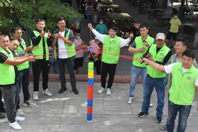 早上8:30,經(jīng)過充分的熱身運(yùn)動(dòng),拓展活動(dòng)正式開始。本次拓展活動(dòng)共分為破冰開營(yíng)、冰海沉船、珠行萬里、高速軌道、合力搭建5個(gè)環(huán)節(jié)。破冰開營(yíng),展現(xiàn)團(tuán)隊(duì)風(fēng)采,讓大家打破傳統(tǒng)的思維定式,開拓思路,在工作中吸取失敗的教訓(xùn),積累成功的經(jīng)驗(yàn),建立一種新的工作模式。冰海沉船、珠行萬里等團(tuán)隊(duì)協(xié)作競(jìng)技項(xiàng)目讓大家感受團(tuán)隊(duì)間有效的配合、銜接以及自我控制能力,不僅提高團(tuán)隊(duì)默契克服困難的能力,也進(jìn)一步加強(qiáng)了團(tuán)隊(duì)溝通能力。