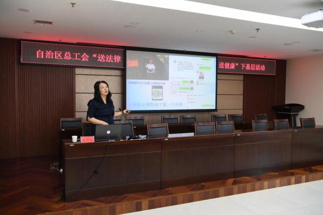 為加快推動(dòng)健康企業(yè)創(chuàng)建,不斷提升全國(guó)職工健康水平,5月19日,自治區(qū)總工會(huì)“送法律、送健康”下基層活動(dòng)在我公司順利組織實(shí)施開(kāi)展,受邀老師周鋼、陳沛其分別為大家進(jìn)行《民法典》及職場(chǎng)解壓相關(guān)知識(shí)授課。