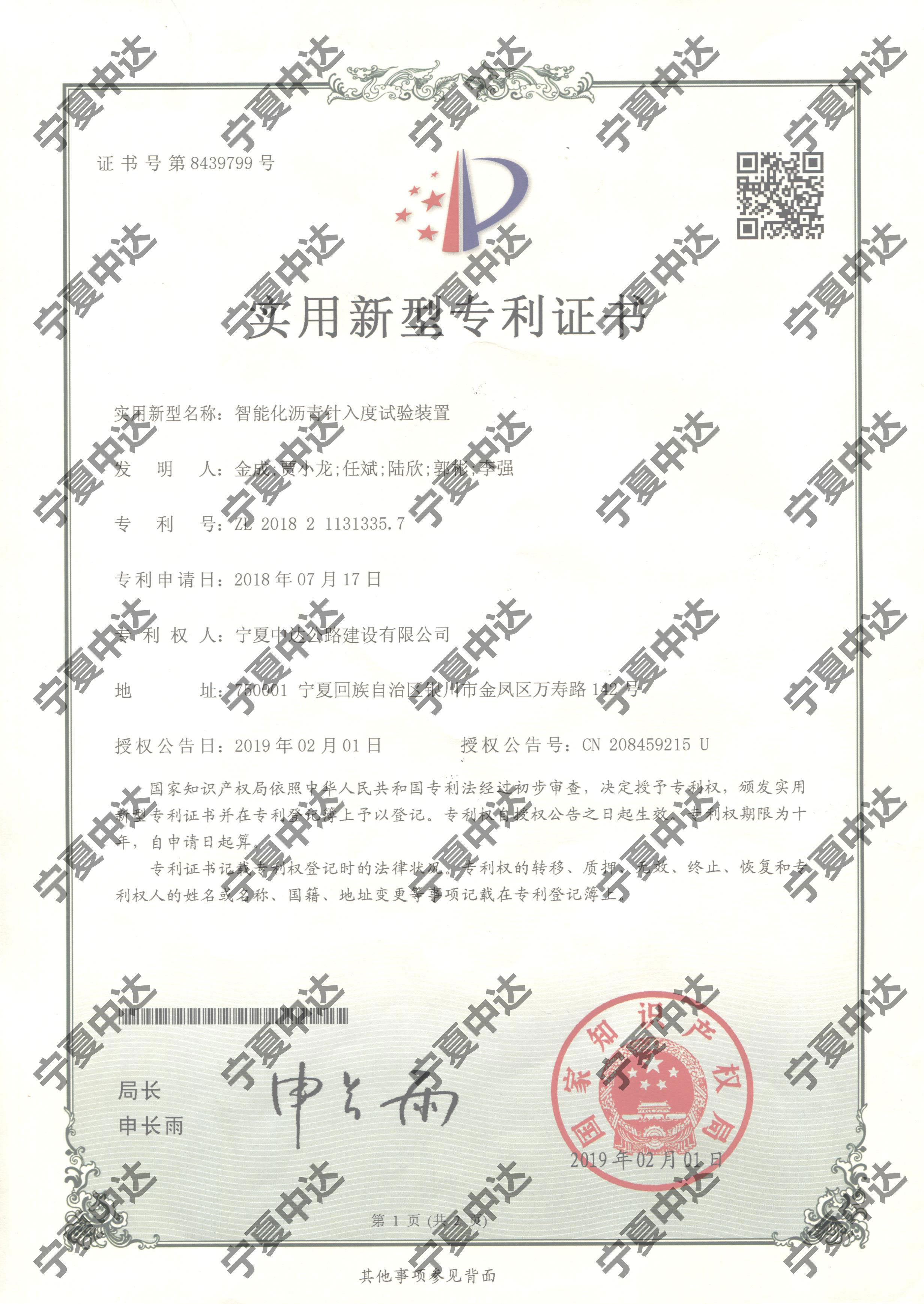 實(shí)用新型名稱:智能化瀝青針對(duì)入度試驗(yàn)裝置