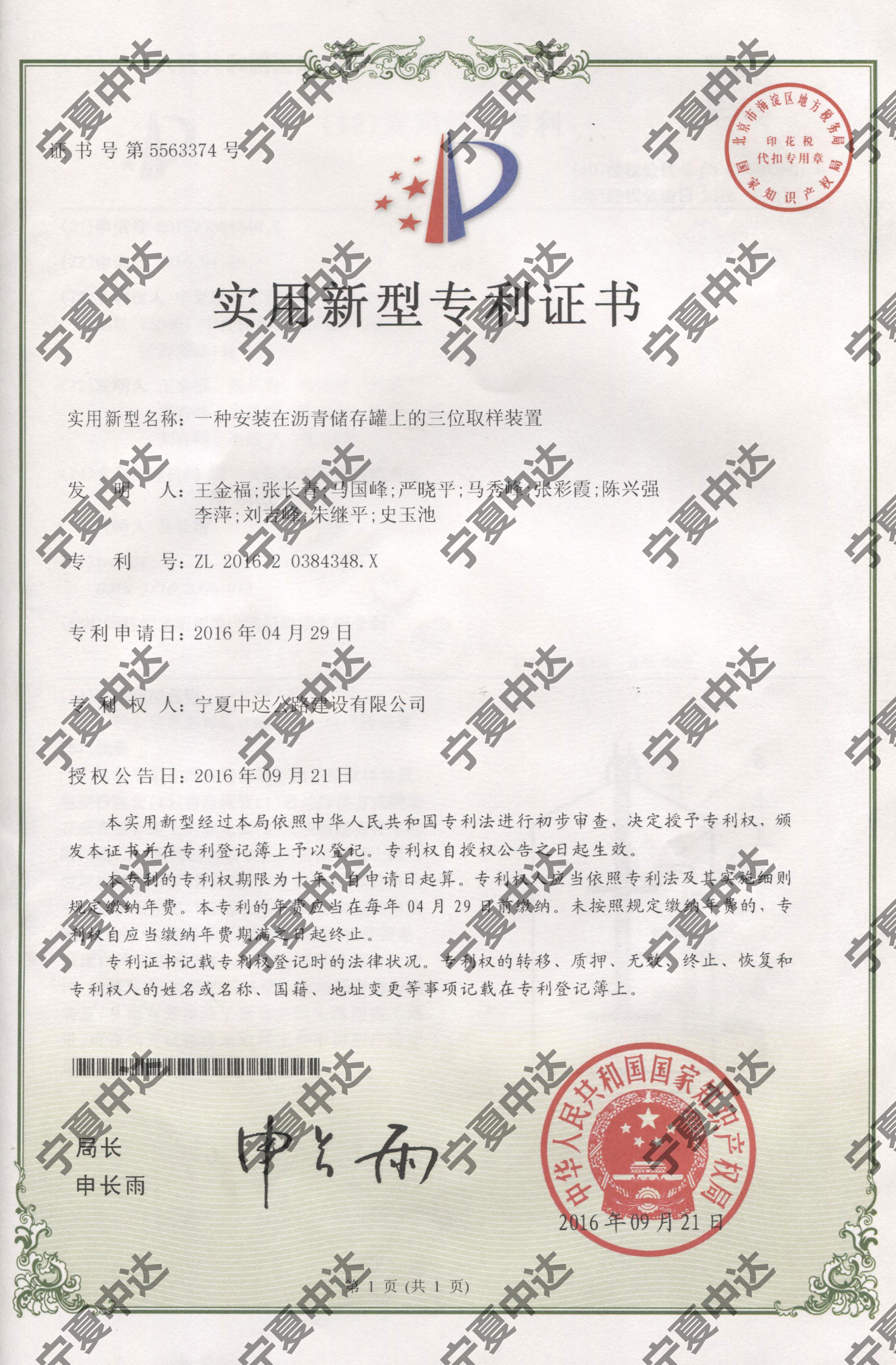 實用新型名稱:一種安裝在瀝青儲存罐上的三位取樣裝置