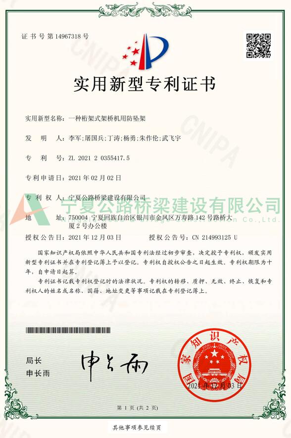 實(shí)用新型專利:一種桁架式架橋機(jī)用防墜架