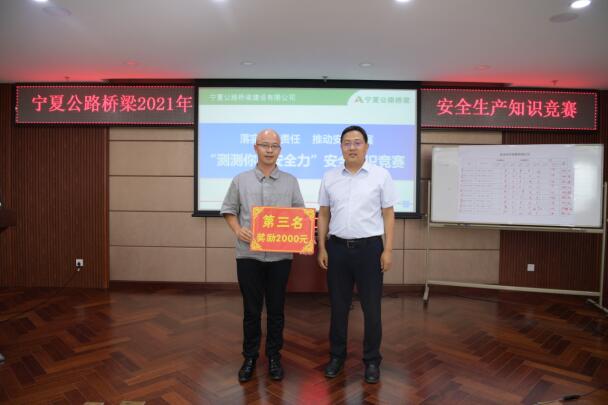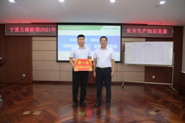 六月的天,驕陽似火;六月的工地,熱火朝天;六月,又是全國安全生產(chǎn)月。隨著公路建設(shè)施工高峰期的到來,寧夏公路橋梁建設(shè)有限公司安全月各項活動有條不紊逐項開展。“測測你的安全力”安全知識競賽作為公司安全月活動中一項主要內(nèi)容,各單位圍繞安全法律法規(guī)、規(guī)章制度及安全技術(shù)標(biāo)準,逐級開展了安全知識競賽活動。6月29日,“測測你的安全力”安全知識競賽決賽在公司總部十三樓會議室順利進行。比賽有總公司、各分公司共九支代表隊參加。比賽內(nèi)容有參賽選手必答題、搶答題、看圖識隱患及觀賽群眾搶答題環(huán)節(jié),比賽分數(shù)你追我趕,比賽高潮彼此起伏。通過知識競賽,大家對比賽題中出現(xiàn)的安全法規(guī)、公司制度、現(xiàn)場標(biāo)準共一百二十道題有了了解、掌握。最終,總公司代表隊獲得了第一名、橋梁公司兩個代表隊分獲二三名,路面公司獲優(yōu)秀組織獎。通過安全知識競賽活動的開展,對于提高全員安全意識和學(xué)習(xí)安全知識的積極性,推進全員安全生產(chǎn)責(zé)任制落實,將踐行 “落實安全責(zé)任,推動安全發(fā)展”為主題的安全生產(chǎn)月活動推向高潮,也為進一步保障公司發(fā)展安全提供保障。