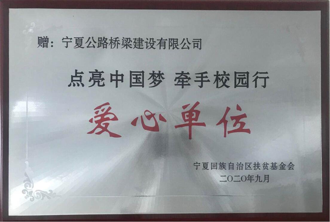 為堅(jiān)決貫徹落實(shí)黨中央、國務(wù)院《關(guān)于進(jìn)一步加強(qiáng)和改進(jìn)未成年人思想道德建設(shè)的若干意見》,將社會(huì)主義核心價(jià)值體系教育融入少年兒童成長過程,在中華人民共和國成立71周年來臨之際,寧夏公路橋梁建設(shè)有限公司積極響應(yīng)寧夏扶貧基金會(huì)組織實(shí)施的“點(diǎn)亮中國夢·牽手校園行”——踐行社會(huì)主義核心價(jià)值觀公益活動(dòng),積極履行社會(huì)使命與責(zé)任,關(guān)注、支持寧夏扶貧公益事業(yè),向?qū)幭幕刈遄灾螀^(qū)扶貧基金會(huì)捐贈(zèng)善款40200元,致力于扶貧公益事業(yè)的發(fā)展和對(duì)貧困人群的幫助。