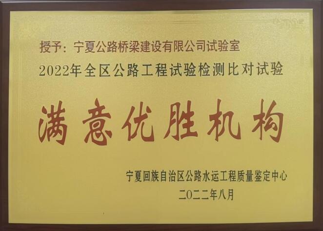 8月5日,自治區(qū)交通運輸廳召開2022年全區(qū)公路工程試驗檢測比對試驗總結(jié)大會,公司中心試驗室在本次比對試驗活動中成績突出,被評為“滿意優(yōu)勝機(jī)構(gòu)”。