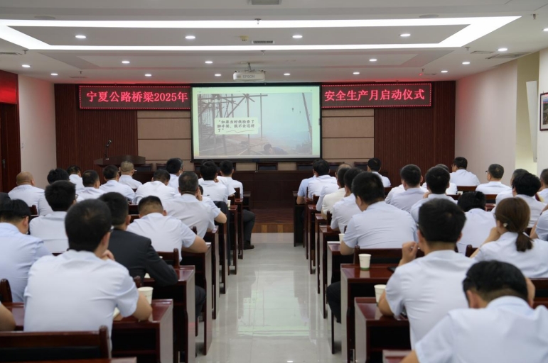“安全是企業(yè)的生命線,更是每位工程建設(shè)者的幸福底線!”5月30日,寧夏公路橋梁建設(shè)有限公司2025年“安全生產(chǎn)月”活動啟動儀式在公司十三樓會議室舉行。公司高中層領(lǐng)導(dǎo)、各分公司負(fù)責(zé)人、機(jī)關(guān)員工共75人參加。以一場“儀式+承諾+行動”的立體啟動動員,正式拉開本年度安全生產(chǎn)月序幕。