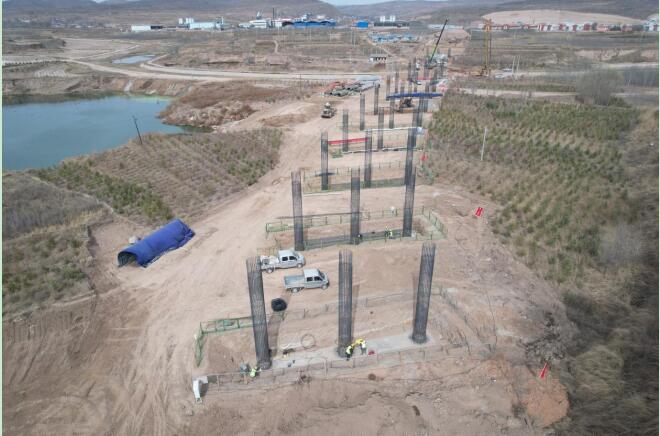 截止目前,項(xiàng)目部已完成挖方56000方,完成占比47%,填方53000方,完成占比46%,地系梁完成6道,10個(gè)墩立柱鋼筋骨架已安裝就位。