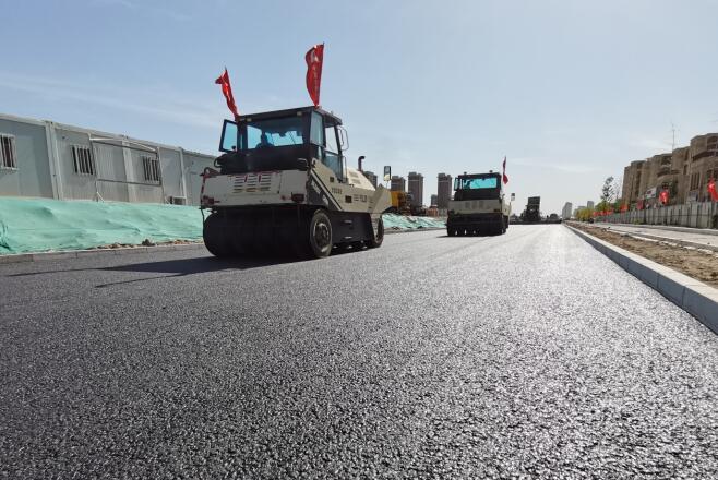 5月26日上午6時許,團結路(民悅街)項目瀝青砼面層攤鋪施工正式拉開序幕。