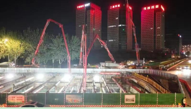 7月20日凌晨5時,銀川市賀蘭山路與民族街快速化改造工程暗埋段4#塊段底板澆筑順利完成,標志著隧道暗埋段關(guān)鍵節(jié)點施工取得了階段性突破,吹響了主體結(jié)構(gòu)全面施工的攻堅號角。