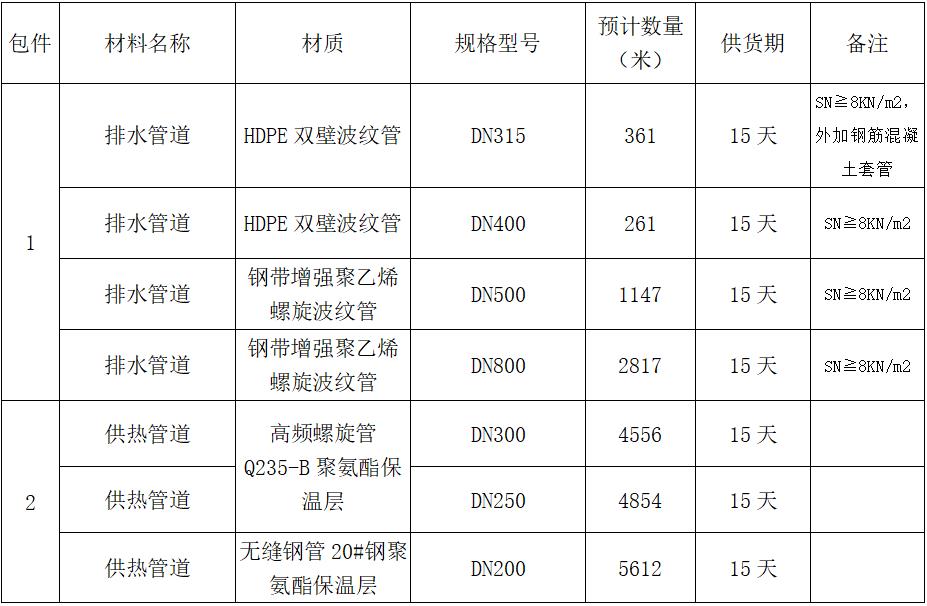 2.1 項目概況:寧夏公路橋梁建設(shè)有限公司為承建新疆柯坪縣市政路項目施工任務(wù)采購所需排水管道、供熱管道,本次采購合同性質(zhì)為固定單價合同,供貨地點為新疆阿克蘇市柯坪縣柯坪鎮(zhèn)項目施工現(xiàn)場。